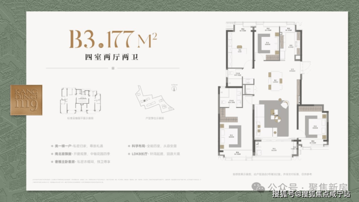 建筑面积约177㎡四房户型,6重采光面,室室皆阳,是对于预算更高的客户,招商给出的又一全新选择。