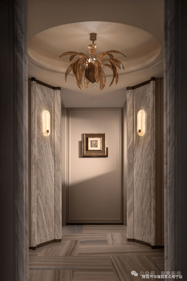 采用米黄色温润石材,巧妙模拟风的流畅形态,营造出既庄重又舒适的归家氛围。这片宽广的流线型石墙在柔和灯光的映衬下,更显璀璨夺目,而风雨连廊的灯带设计,更添一份尊贵仪式感。康定壹拾玖售楼处电话📞400-8800-703如有问题欢迎来电咨询,来电即可享受买房优惠!