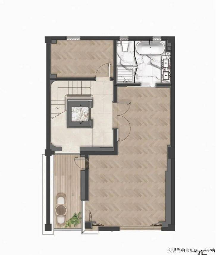 • 花园 25-75 ㎡,顶层 25 ㎡露台,南向采光井让地下室也能种绿植。