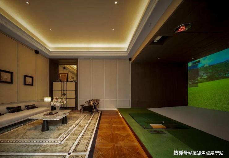 约2000㎡ 下沉式会所,配置星空顶恒温泳池、WaterRower品牌健身房、私宴厅以及3D室内高尔夫球室(高尔夫尊/同等品牌)等等。