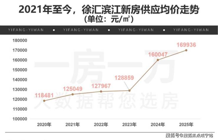 我拉取了近5年徐汇滨江的新房供应均价,可以看到,今年徐汇滨江整个板块新房均价已高达约17万/㎡,相比2020年涨幅高达43.4%。