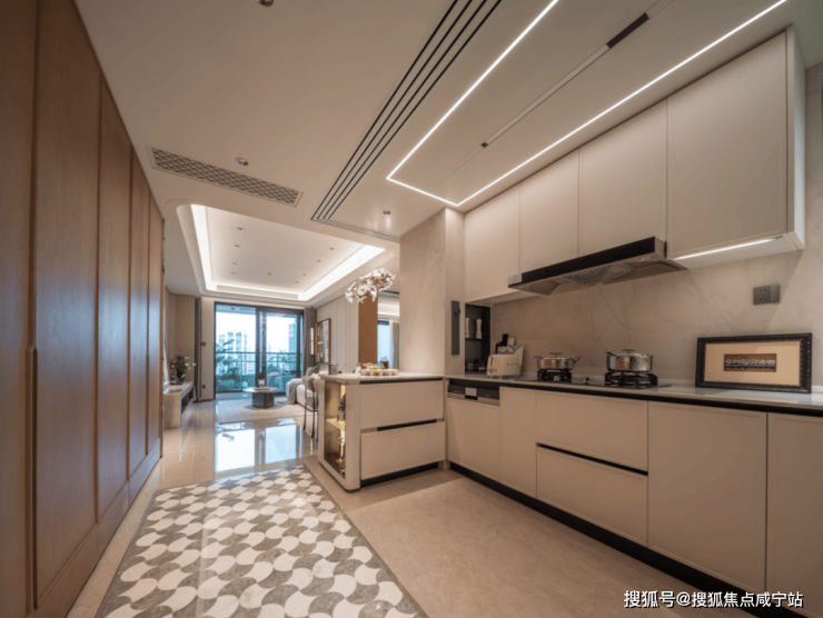 通过巧妙的S墙设计,不仅优化了餐厨动线,还扩大了厨房操作面,使空间利用率大幅提升。
