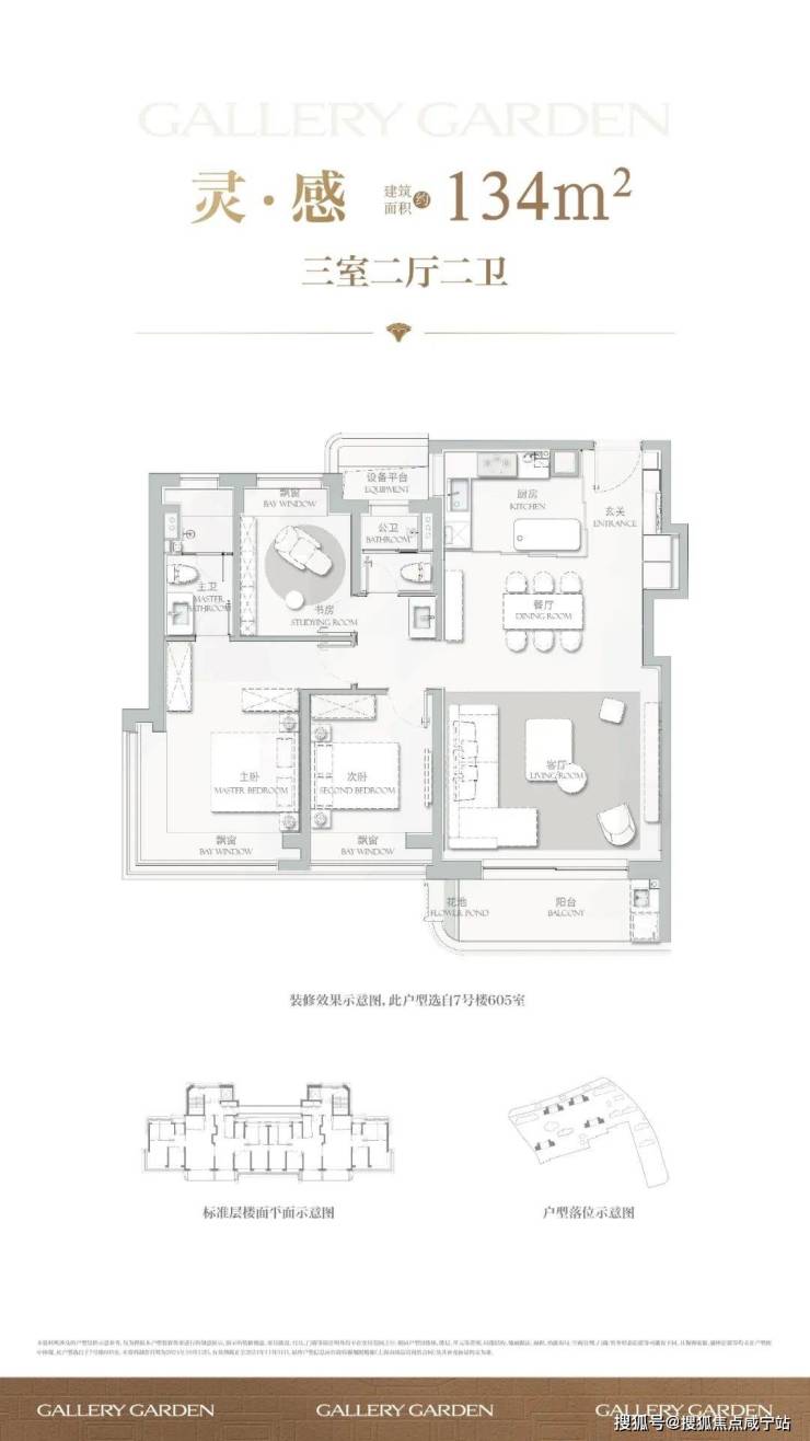 建面约134㎡3房2厅2卫户型