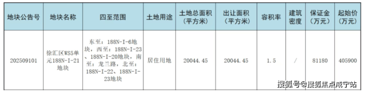 公告显示,徐汇滨江新地块出让面积20044.45㎡,起始价约40.59亿元,折合起拍楼板价约13.5万/㎡!