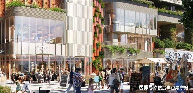 项目的食集也将对标阿姆斯特丹市集,在屋顶上打造天窗,在屋檐中留有特色城市观景台,在屋檐下构筑自然植物源,形成以人为中心,与绿植共处的社交空间。