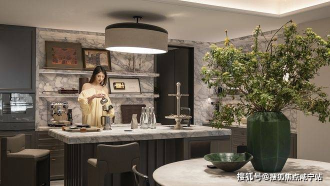 餐厅空间按照私宴标准打造,1.1*2.3米的超大岛台兼具颜值及功能。