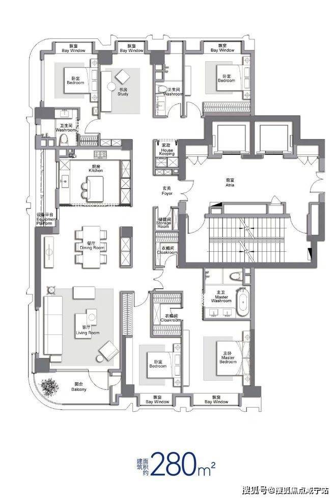✔建面约280㎡,内环难有敌手的全功能性户型。