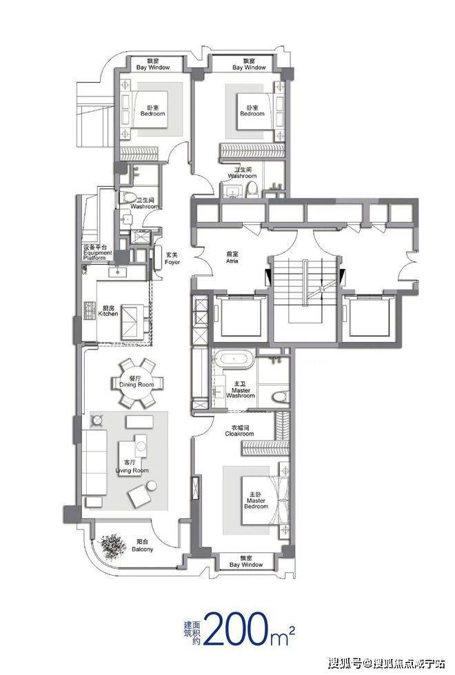 ✔其中建面约200㎡大三房,拥双主卧套房