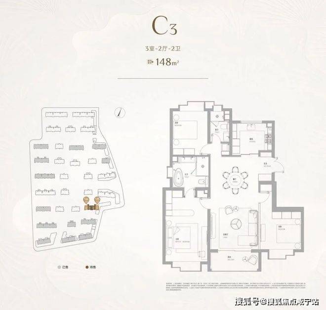 项目一期房型均呈现大开间、短进深的特点,主力房型为131㎡3房,占到一期总量的70%,其余房型为100㎡2房,155㎡3房,175㎡4房。项目一期于2022年11月入市,推出621套房源(C区),总认购1400+组,认购率225%,入围分55.28,开盘售罄!