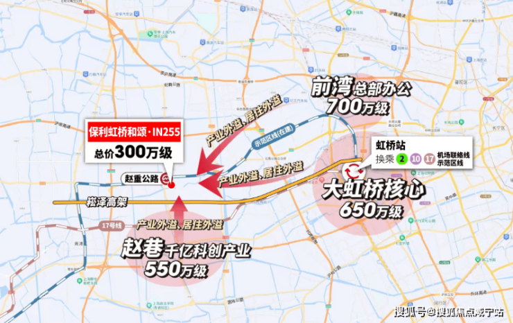 2站外的前湾已700万级,徐泾650万级,与项目同距离的赵巷也已550万级,那保利虹桥和颂凭借300万级,叠加示范区线(在建)势能,无疑将成为大虹桥乃至全上海更为期待的价格洼地。