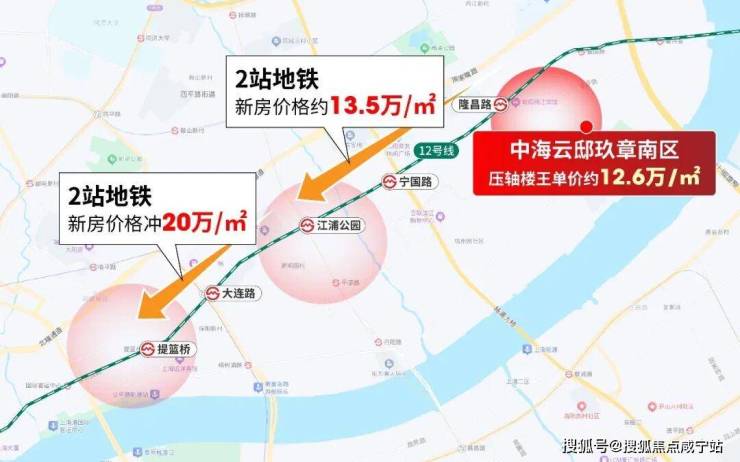 沿着12号线,2站地铁刚开盘的新房13.5万/㎡,再过2站北外滩绿城项目要冲20万/㎡!