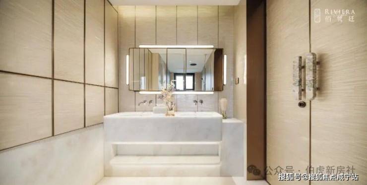 阳光满溢, 尤其主卫罕见实现朝南采光 ,搭配奢华的双台盆、马桶间、浴缸与淋浴的“四件套”配置,尽显高端居住品质;