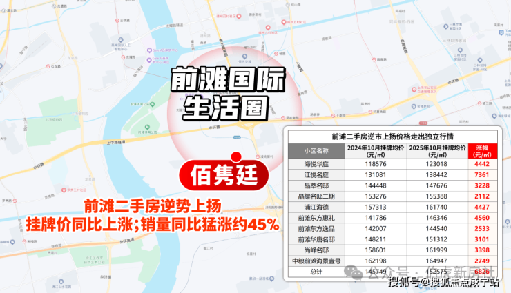 价格上,在约98%板块挂牌价同比下降的当下,前滩多数小区仍保持 价格坚挺 ;销量上,今年1-10月二手房成交约230套,同比 大涨约45.6% ,印证板块吸引力。