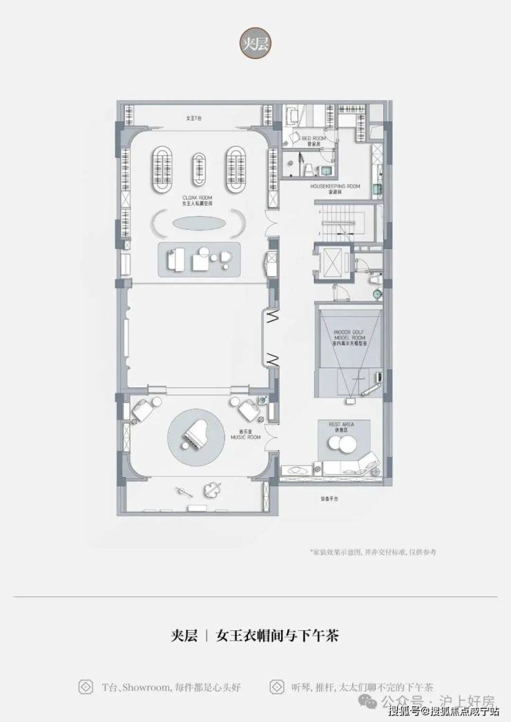 • 从容抵达步入地下会客厅,转角衣帽间换一身便服,轻松切换身份情绪