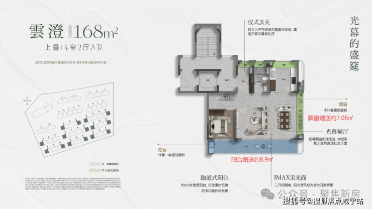 同时,还可以看到南向和北向都有一个半计入面积的阳台,而且据说16㎡的新规阳台面积也顶格了,即便只按8万单价算,这份空间价值就超过100万。