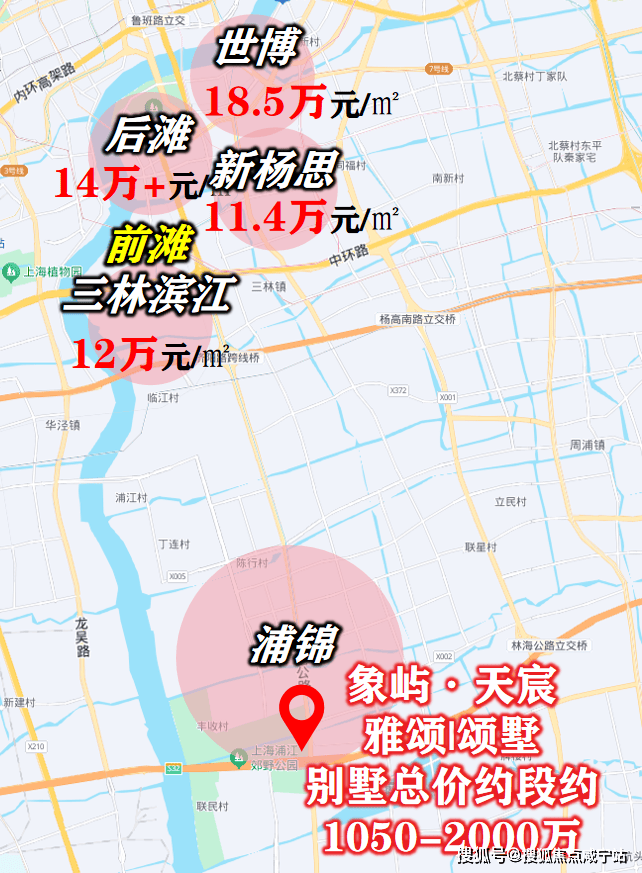 随着前滩发展成熟,周边三林滨江、新杨思、后滩已率先承接外溢红利。