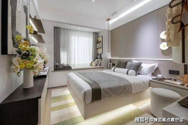 这套户型定义了新尺度,主卧采用套房式设计,私密感与舒适感满满。南侧大面宽阳台,不仅增加室内采光和通风,也可以更高效地利用空间。