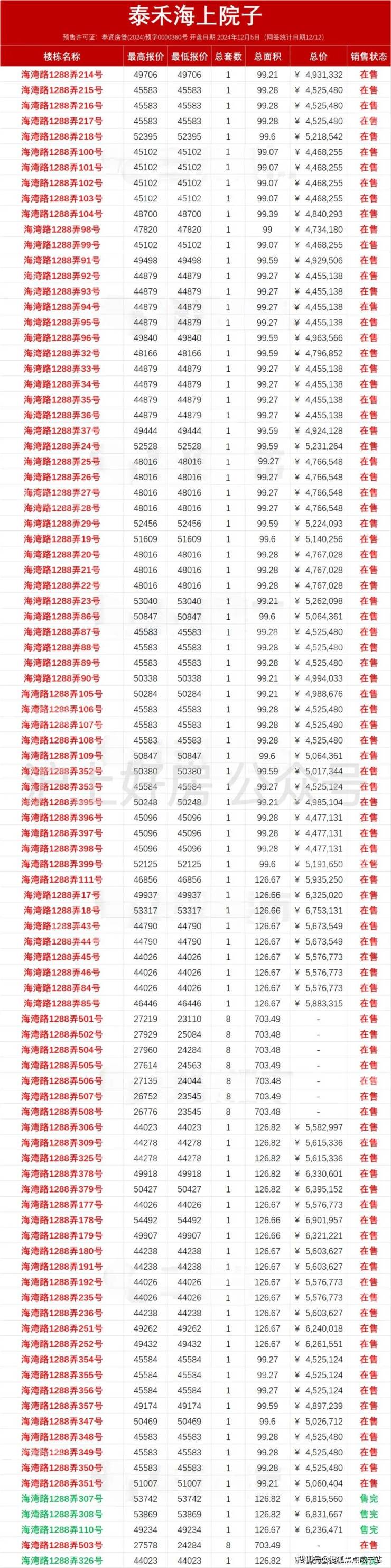 99平使用面积330平左右,产证面积165平,套内面积270平左右,花园50-60平左右,四套房全朝南;总价约450万-565万