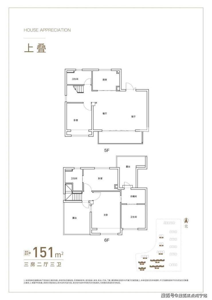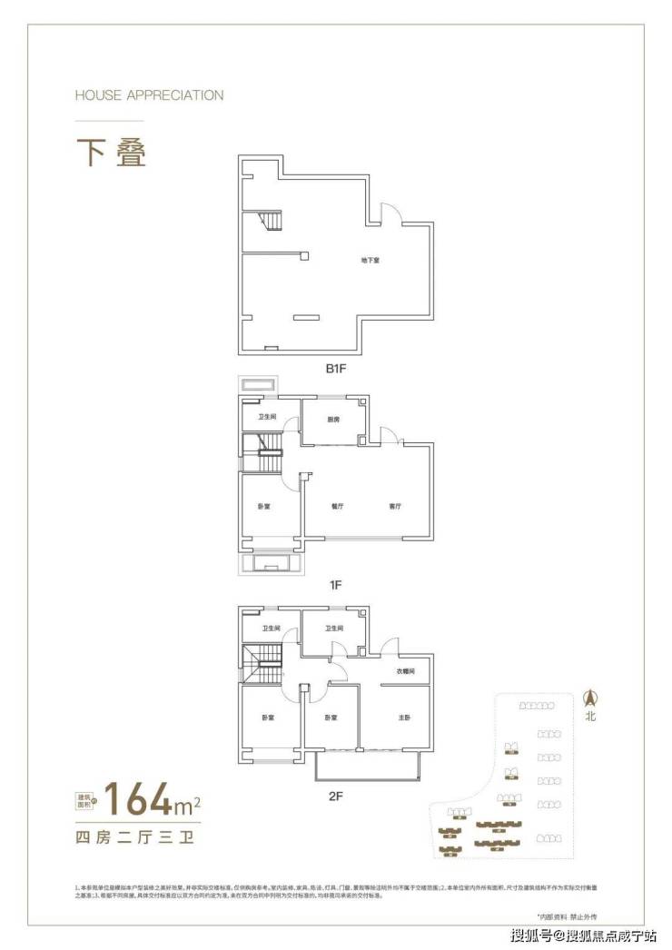 叠拼洋房:上叠约151m²: 24套,3室2厅2卫+露台,中平约164m²: 22套,3+1室2厅3卫;下叠约164m²: 24套,4室2厅3卫+地下室