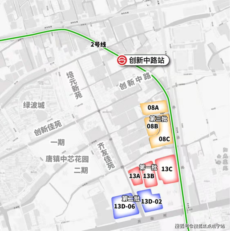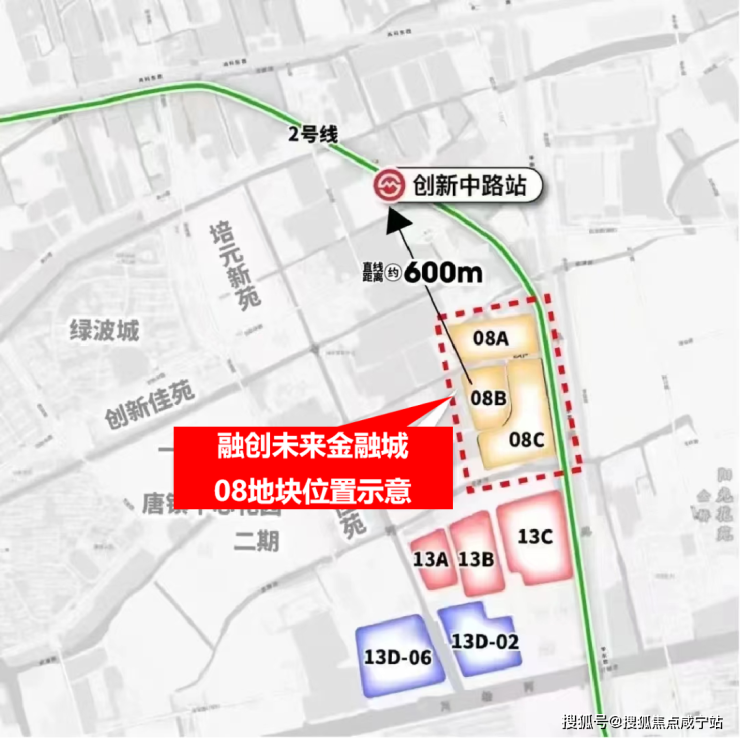 融创未来金融城08组团位于唐镇镇南社区板块,轨道交通地铁站2号线及商圈南约600米。本轮即将上市的为08C地块的第一批房源,总平面分布图如下: