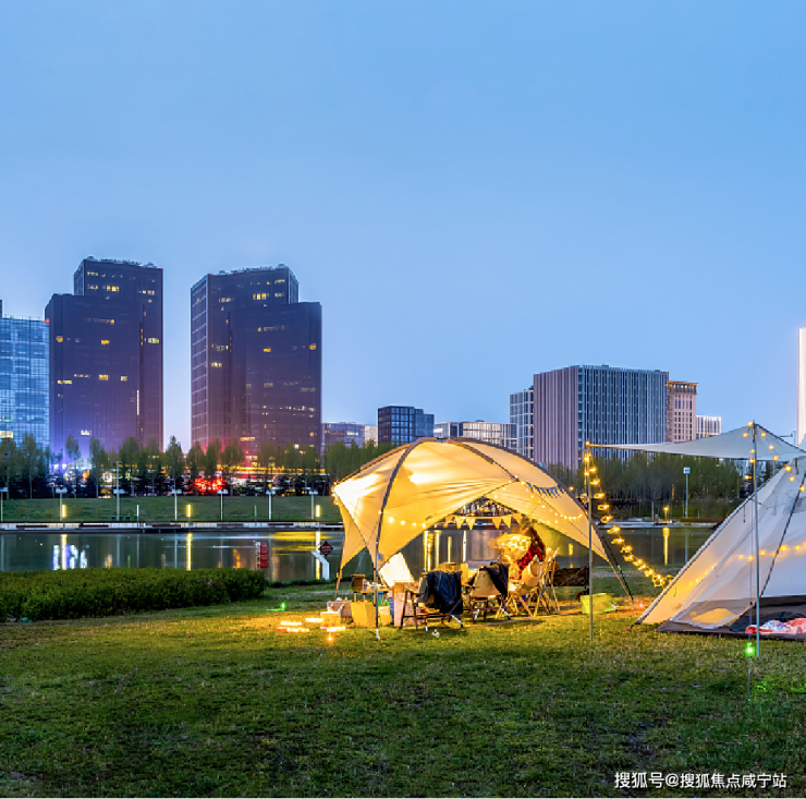 02 一线滨水 写就丰盈诗意;城市亲水生态空间,夜光跑道、沿湖露营、烧烤区,营造形式多样而富有活力的滨河亲水空间,打造全龄休闲社交场所。