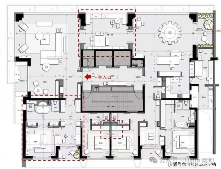 主力户型为190㎡三房与205㎡四房,均采用横厅设计,空间通透感极强。252㎡户型则配置了独立家政间与双主卧套房,契合多代居家庭需求。全屋采用恒氧恒净系统,搭配地暖、新风等科技设施,细节处处体现“隐形奢华”。