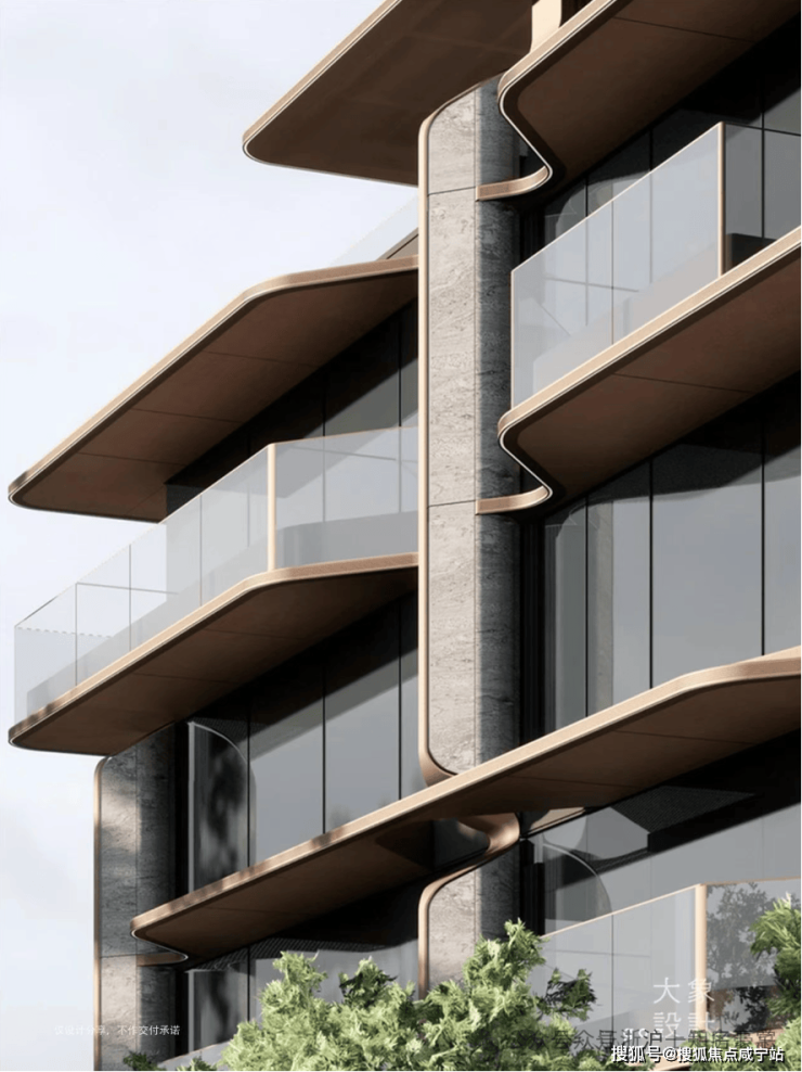 在建筑设计上,GOA大象设计跳出常规住宅的方盒子形态,以徐汇作为中国现代音乐发源地的文化基因为灵感,将“乐器王后”大提琴的优雅弧线,转译成建筑立面的二维曲线语言!