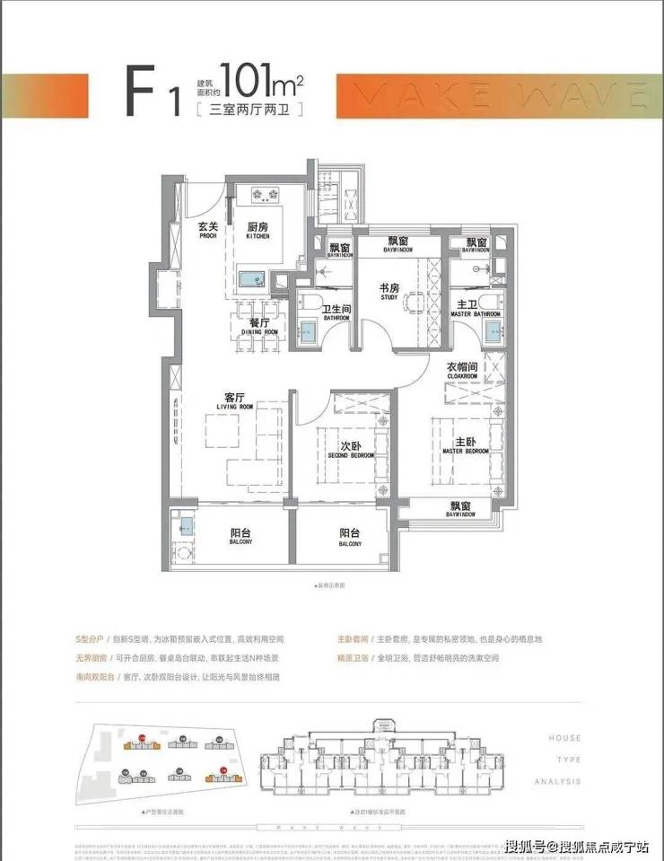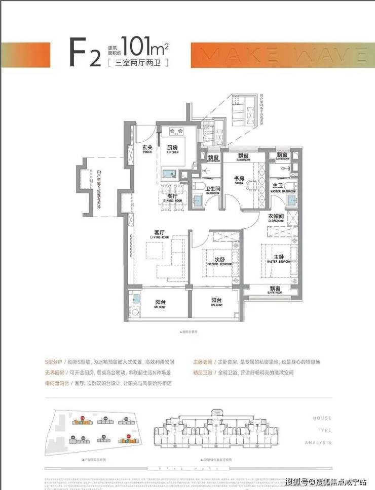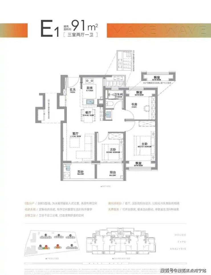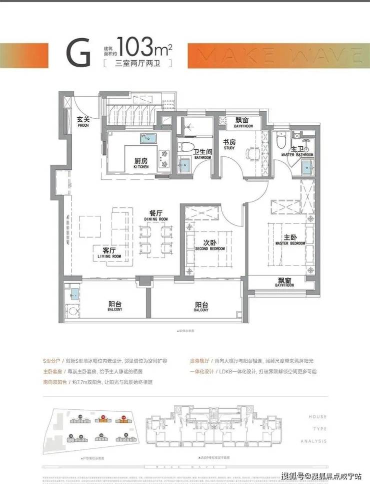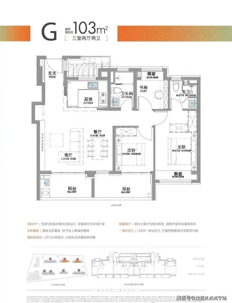 建面约127㎡三房两厅两卫,该户型最大的亮点是有着比肩豪宅的南北三阳台黄金布局,这是2025年之后,松江首个三阳台户型。