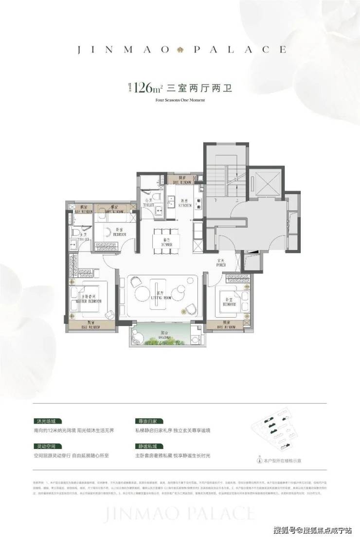 ● 建面约126㎡横厅3房:一步到位顶奢3房,全杨浦没有竞品。