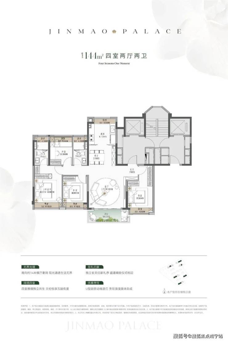 ● 建面约144㎡4房:同价格在杨浦只有百平米3房可选。