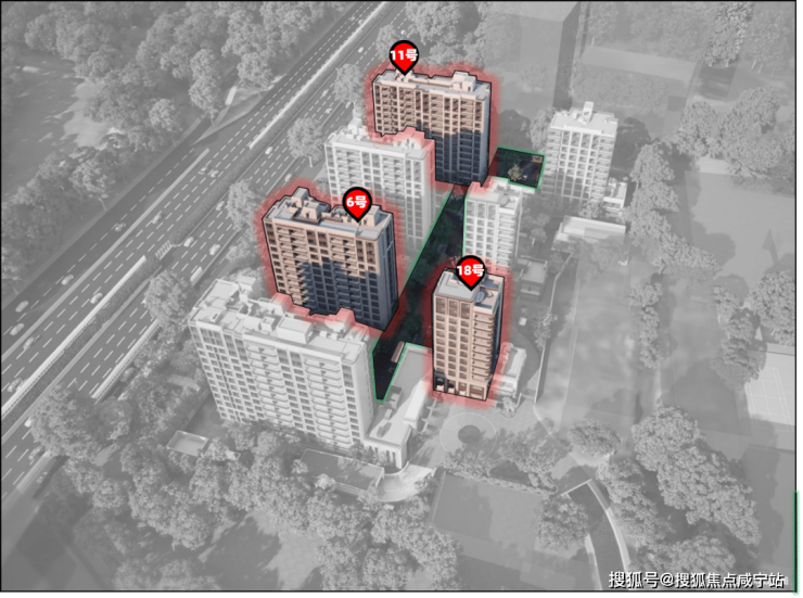 西郊云庐本次首开楼栋为6号、11号、18号楼,其中18号为221㎡大户型,其余均为104-143㎡户型,具体分布位置如下: