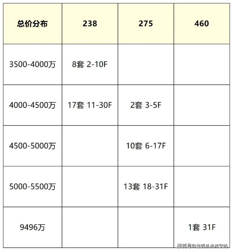 总价方面,3500-4000万的房源有8套,4000-5000万的房源足足有29套,4000万级预算买家上车的概率非常高!