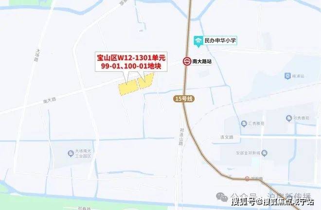 宝山区W12-1301单元99-01(住宅)、100-01地块(商办),其中住宅地块四至范围为东至茂汇路,西至茂才路,南至姚湾路,北至南大路。就在南大智慧城双子塔西侧一点点,距离15号线南大路站仅约300多米。