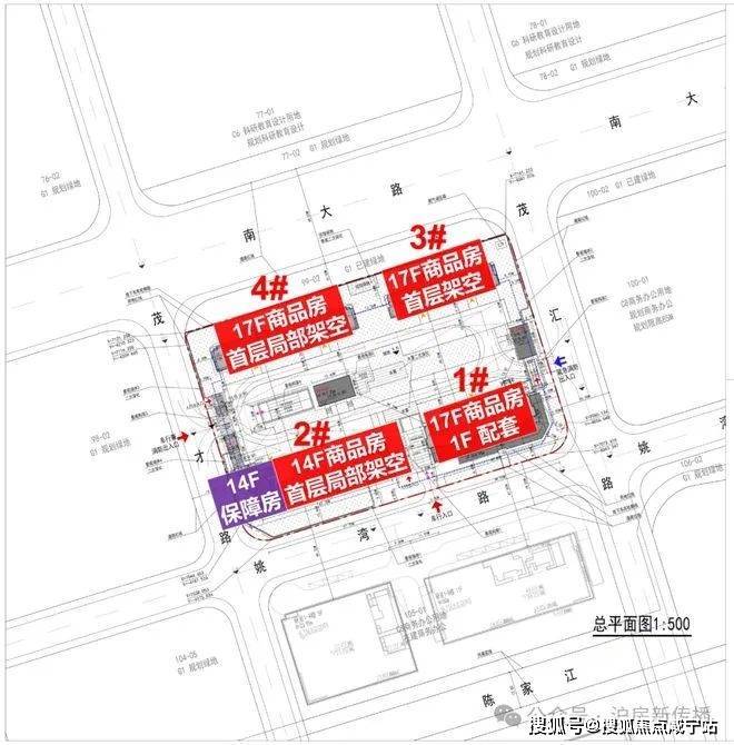 99-01地块拟建4幢14-17层住宅,另外,还有一栋14层的保障房,以及社区配套;项目总户数规划272户(包含5%保障房),最高建筑52.35米,容积率2.5。