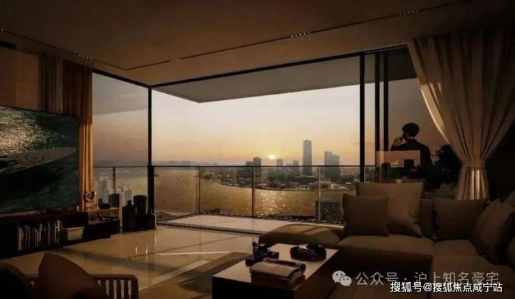 项目的滨江大户型,以无界平层结构,配合3.3米层高(部分)和全景落地窗打造270°环幕江景舱,实现上海滨江市场罕见的IMAX环幕江景视野!