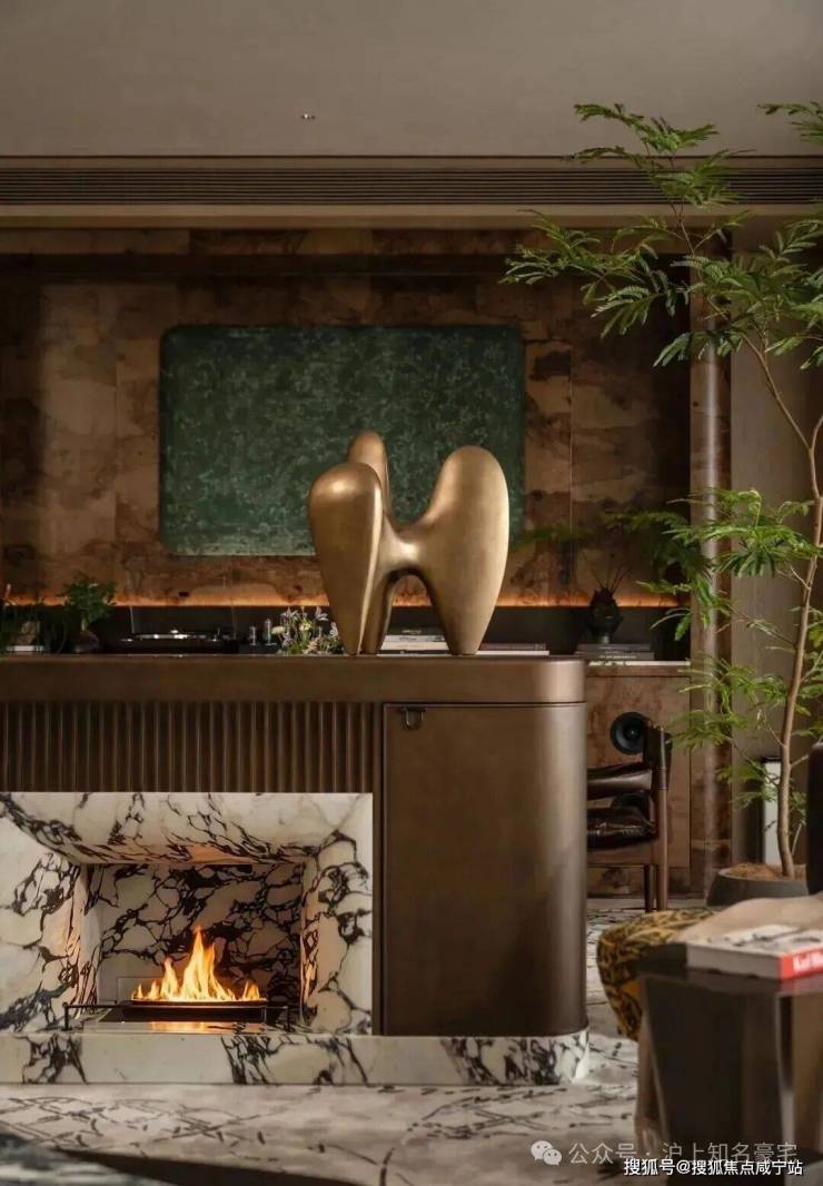 而且这个空间的装标也是非常精致的,1.7米双扇铸铝门,搭配宝格丽石材与祥云灰拼花,延伸至电梯厅。皇家白玉石玄关,兼具储物与展示功能,质感温润!