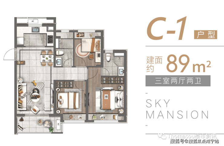 除了建面约89㎡的洋房,建面约83~89㎡高层户型也各有所长,均是三房设计,无论是从结构布局,还是空间利用皆相得益彰,承载一家人的美好生活。高层户型如下: