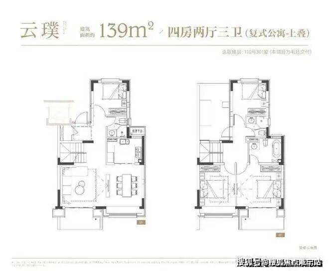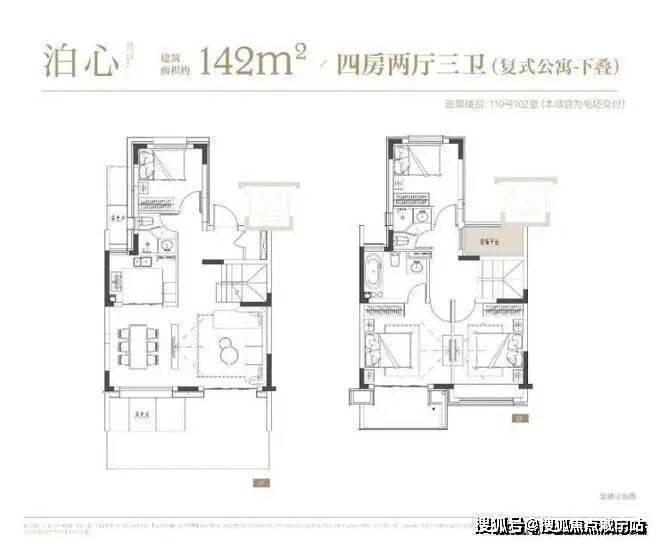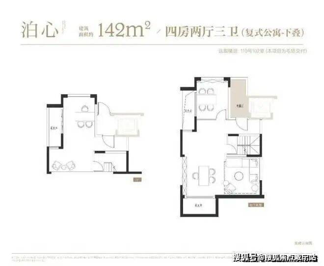 项目叠墅户型有建面约142㎡下叠,建面约139㎡上叠.