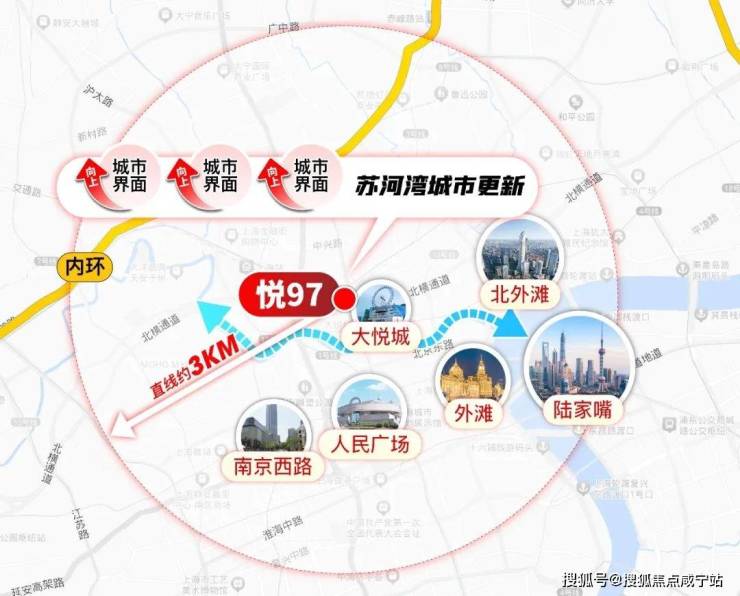 回过来看悦97,它是真正的苏河湾核心位置,真正揽尽了苏河湾的精华!