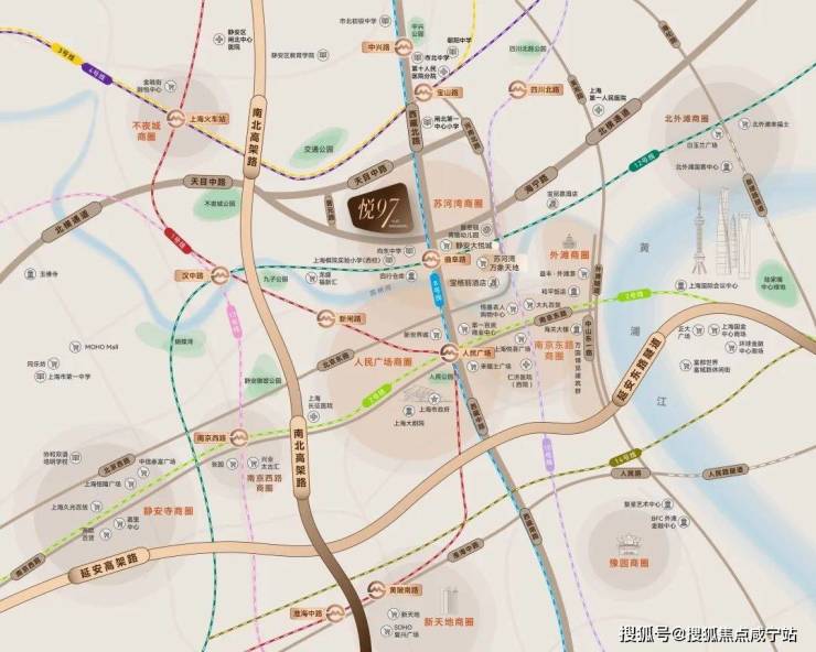 如果不拘泥于步行,视角放大到3公里半径,范围内江涵盖陆家嘴、人民广场、静安寺、南京西路、南京东路、外滩、新天地等城市CBD,上海几乎所有的高能级城市资源都在悦97业主的生活场域之内,这一点也是徐汇滨江难以比拟的!