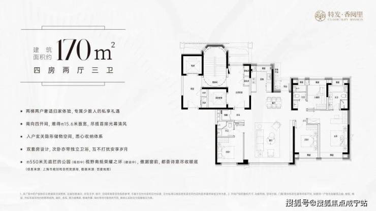 建面约 170㎡四房两厅三卫,占据公园首排,将园景、城景尽收眼底。约 15.6 米面宽、南向四开间设计,采光通风俱佳。南向双套房设计,更好的居住体验;主卧套房配备步入式衣帽间与豪华主卫,配备浴缸精装交付,提供超舒适居家体验。