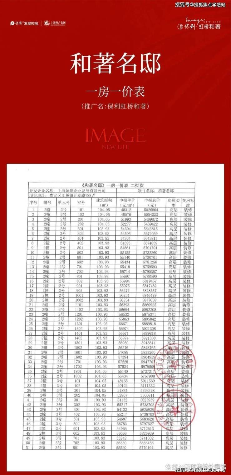 保利·虹桥和著售楼处热线:400-8800-703✅✅新房多维度 优秀选手嘉定「保保利·虹桥和著售楼处热线:400-8800-703✅✅」耀眼启幕14号“豪宅线” 200米真地铁盘建筑面积约为104-128㎡奢阔3-4房550W级起 新房置业优选火热认购中!一房一价表如下: