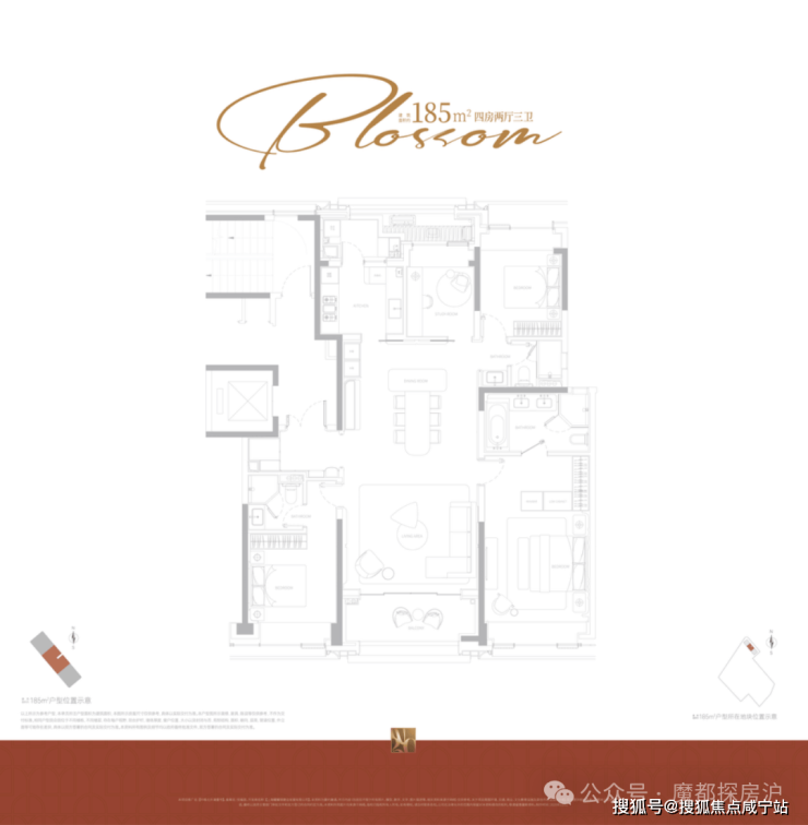 第二个户型, 185㎡四房三卫,一梯一户