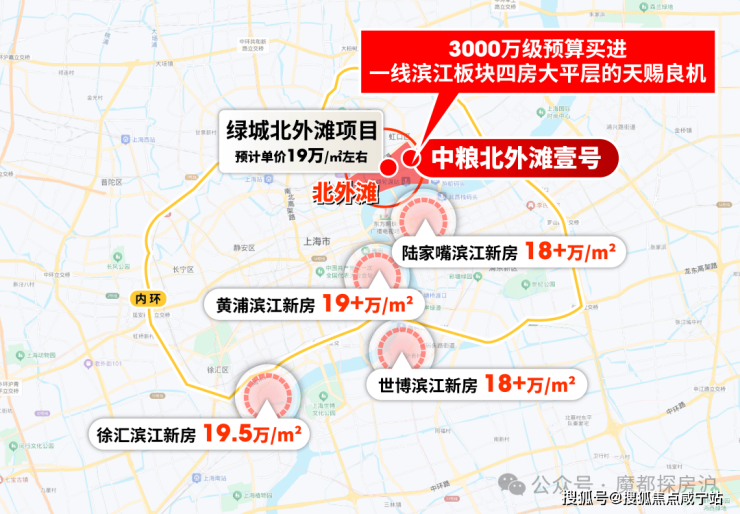 整个上海任何一个一线滨江板块,可以看到,除了陆家嘴,黄浦滨江、世博滨江、徐汇滨江等新贵已经“补涨”到19万/㎡左右,中粮显然被低估的价格,当下2500万预算一线滨江板块没有其他楼盘可以竞争。