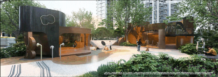 项目南向的1.7万平方米长条形代建绿地,是保利天奕的一大“加分项”。它不仅像一道天然屏障,有效阻隔了主干道的噪音与灰尘,更被精心打造成了社区景观与公共空间的延伸。比如最新开放的丛林童梦岛,夏天专门为孩子们设置了戏水池和沙滩,让孩子们在家门口就能体验“度假感”,这样的设计也收获了准业主们的一致好评。