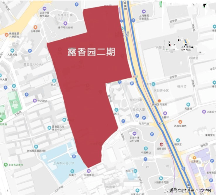 露香园二期地块,位于黄浦区老城厢核心地段,北至高墩街-福佑路,南至方浜中路-昼锦路,东至河南南路-狮子街,西至露香园路,与露香园一期紧密接壤。 东临豫园和外滩,地理位置优越,临近10号线豫园站。