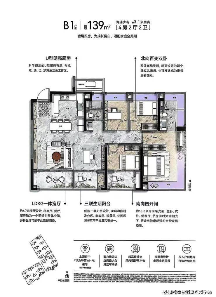 ✅联发·时光新澍售楼处电话:400-8800-703✅︎✅︎✅建面约139㎡4+1房户型,四开间朝南+4飘窗+2个约270°转角飘窗,不管是从什么层面来看这个户型,在市面上都几乎是没有对手的。