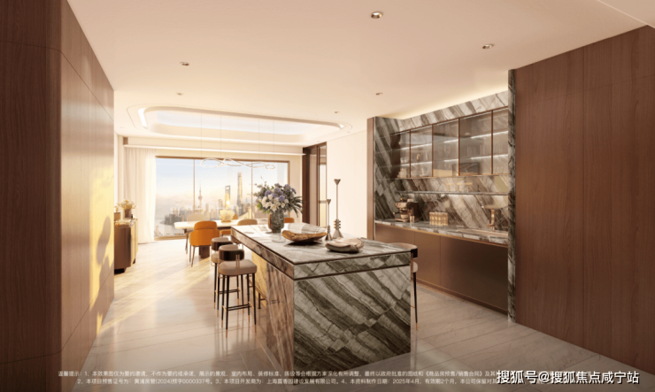 更细节的是,西厨吧台采用“东方木纹石材”,独特纹理与质感让每一次咖啡手冲都成为“生活美学的展示”。