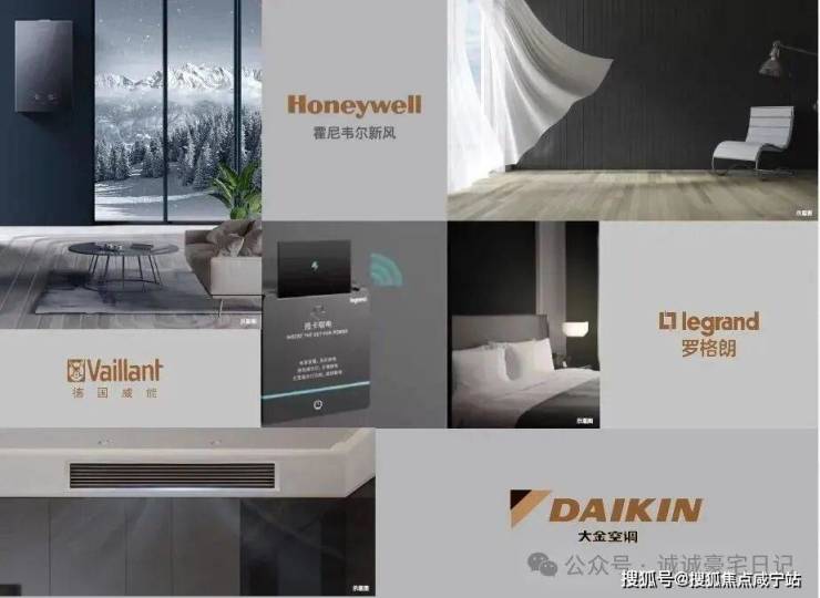 标配一线品牌全屋智慧系统,德国旭格门窗、霍尼韦尔新风(E\F户型)、威能全屋地暖、罗格朗智能家居等。
