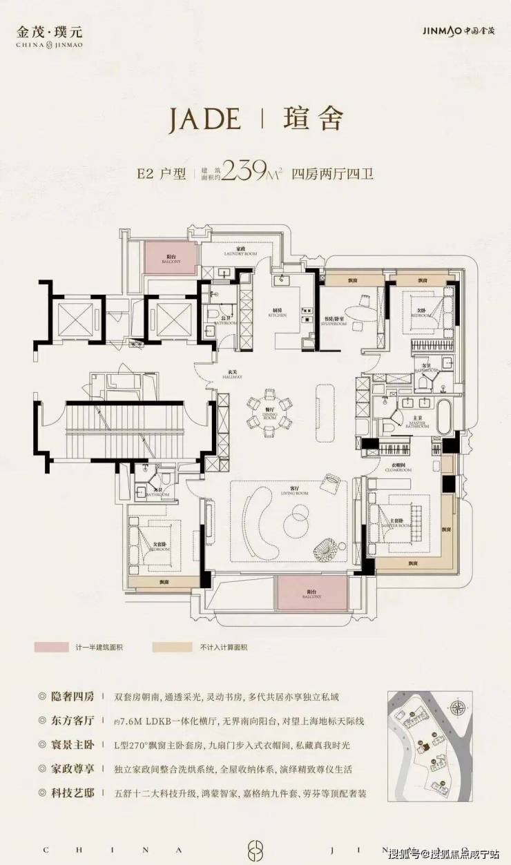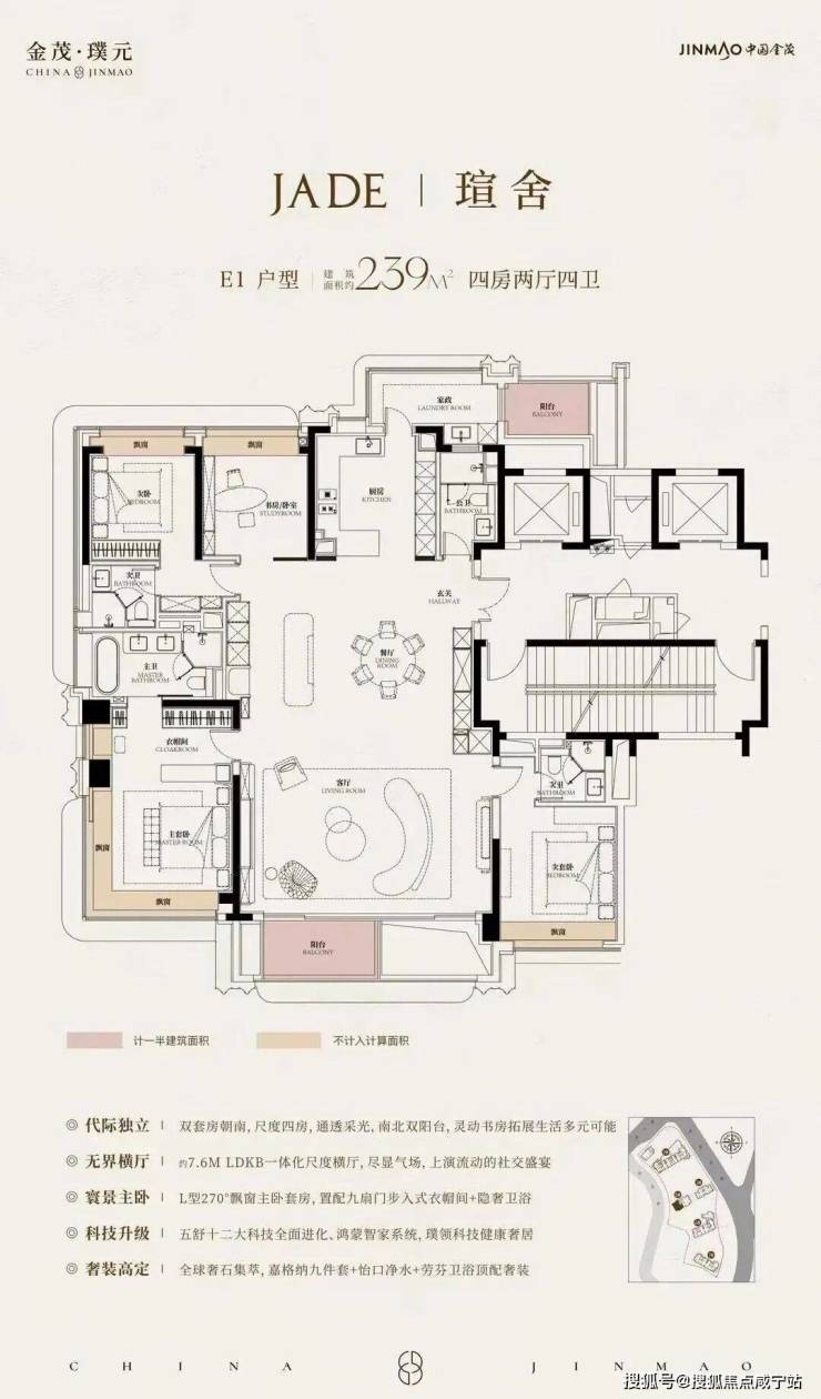 在建面约172㎡户型中,我们可以看到金茂对 “三代同堂” 生活方式的深刻理解!